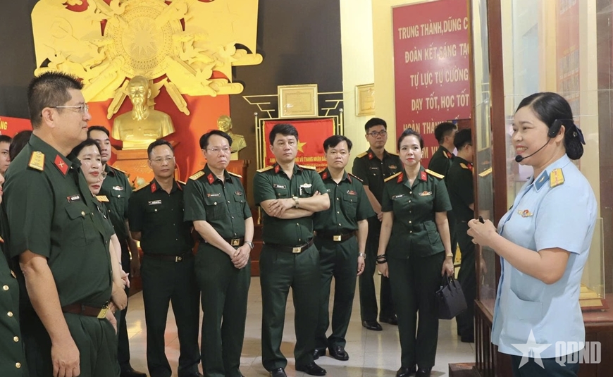 | Đoàn cán bộ lớp tập huấn công tác nghiệp vụ thư viện toàn quân tham quan Nhà truyền thống trường. |