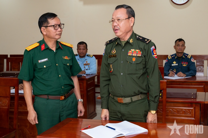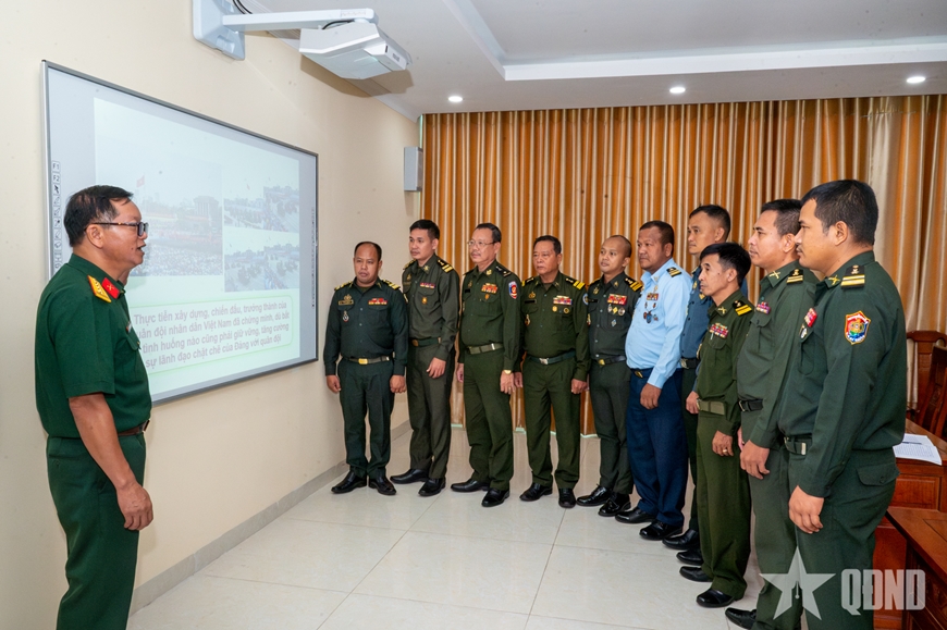 Học viên Quân đội Hoàng gia Campuchia tìm hiểu lịch sử, văn hóa, truyền thống dân tộc Việt Nam và tình đoàn kết 3 nước Đông Dương. Ảnh: TRUNG THÀNH |