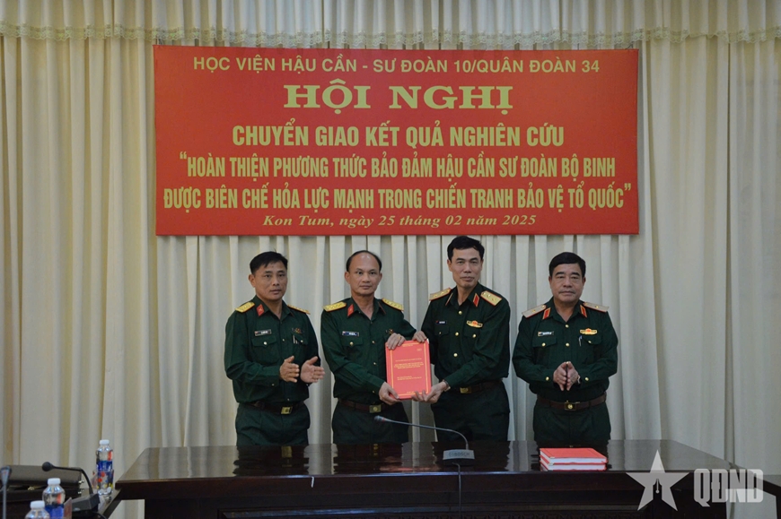| Học viện Hậu cần phối hợp với Sư đoàn 10, Quân đoàn 34 tổ chức Hội nghị chuyển giao kết quả nghiên cứu. Ảnh: XUÂN BÁCH |
