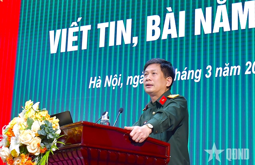 | Đại tá Nguyễn Văn Hải, Trưởng phòng biên tập Văn hóa - Thể thao, Phó chủ tịch Liên chi hội nhà báo Báo Quân đội nhân dân trao đổi chuyên đề bảo vệ nền tảng tư tưởng của Đảng, đấu tranh phản bác các quan điểm sai trái, thù địch tại lớp tập huấn. |