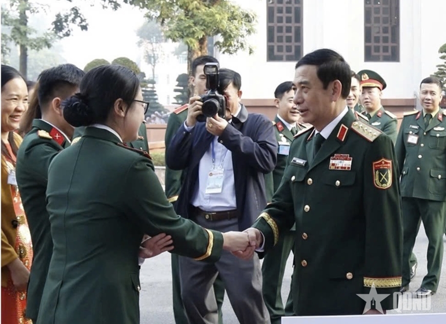 | Trần Lệ Quyên vinh dự được gặp Đại tướng Phan Văn Giang, Ủy viên Bộ Chính trị, Phó bí thư Quân ủy Trung ương, Bộ trưởng Bộ Quốc phòng tại Đại hội Đại biểu Đoàn TNCS Hồ Chí Minh Quân đội lần thứ XI (2025-2030). |