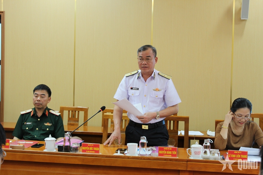 | Chuẩn đô đốc Nguyễn Đăng Tiến, Chính ủy Vùng 3 Hải quân, ủy viên Hội đồng khoa học nhận xét, đánh giá kết quả nghiên cứu đề tài. |