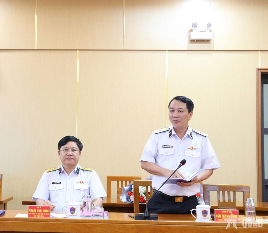| Chuẩn đô đốc, PGS, TS Ngô Thành Công, Giám đốc Học viện Hải quân phát biểu. |