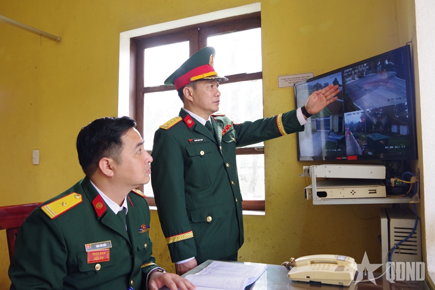 | Đại tá Lê Văn Hoan, Hiệu trưởng Trường Cao đẳng Kỹ thuật Thông tin thăm hỏi, chúc Tết cán bộ, chiến sĩ nhà trường đêm Giao thừa. |