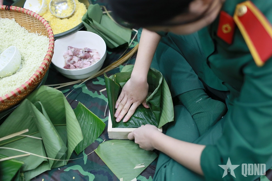 | Niềm vui bên những chiếc bánh chưng xanh. |
