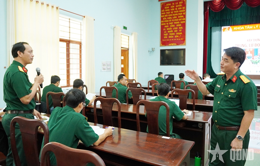 | Tiết seminar của học viên lớp chính ủy trung, lữ đoàn tại Học viện Chính trị. |