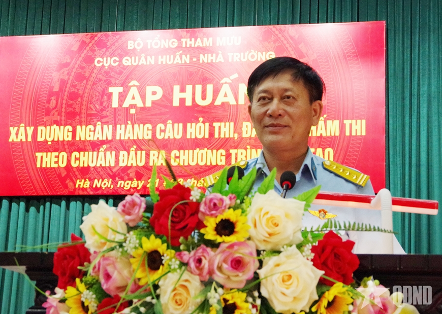 Phát biểu khai mạc tập huấn, Đại tá, TS Lê Công Thành, Phó giám đốc Học viện Phòng không - Không quân, Phó trưởng Ban tổ chức lớp tập huấn nhấn mạnh: Yêu cầu đặt ra đối với công tác giáo dục - đào tạo là phải đổi mới toàn diện, gắn lý luận với thực tiễn, lấy chất lượng làm trung tâm, chuẩn đầu ra làm thước đo. Trong đó, công tác khảo thí và bảo đảm chất lượng giáo dục - đào tạo giữ vai trò quan trọng, đòi hỏi việc xây dựng ngân hàng câu hỏi thi, đáp án chấm thi theo chuẩn đầu ra phải chuẩn hóa về nội dung, kiến thức và có giải pháp khoa học để đánh giá khách quan, công bằng, minh bạch, phản ánh đúng năng lực, phẩm chất, kỹ năng thực tiễn của người học.