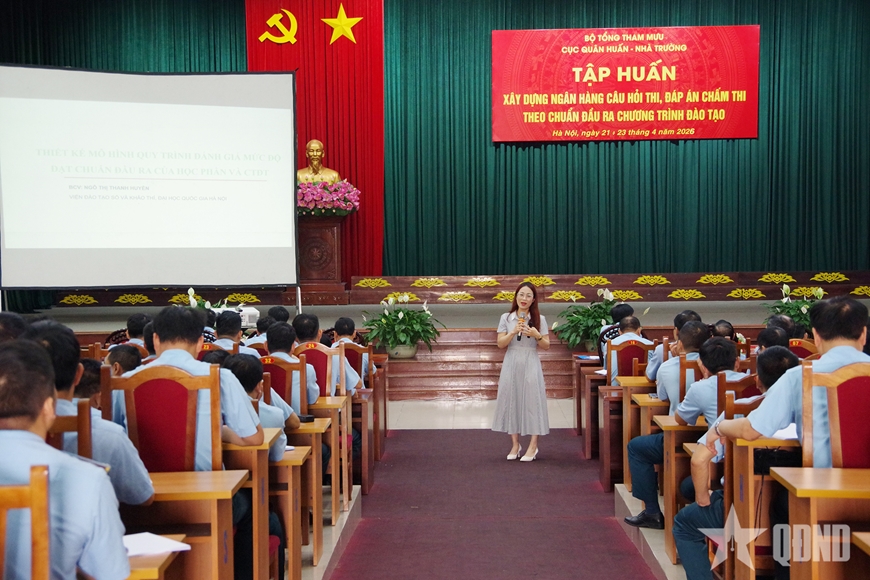Trong 3 ngày, học viên được các chuyên gia của Viện Đào tạo số và Khảo thí (Đại học Quốc gia Hà Nội); Trường Sĩ quan Thông tin trang bị các kiến thức cơ bản về: Thiết kế phương pháp, công cụ kiểm tra đánh giá giúp đo lường mức độ đạt chuẩn đầu ra của học phần, chương trình đào tạo; tổng quan về kiểm tra đánh giá đáp ứng chuẩn đầu ra, vận dụng lý thuyết khảo thí cổ điển và lý thuyết khảo thí hiện đại; kỹ thuật thiết kế câu hỏi mở trong xây dựng ngân hàng câu hỏi thi, đề thi học phần theo chuẩn đầu ra; ứng dụng công nghệ số và trí tuệ nhân tạo trong công tác kiểm tra, đánh giá tại các nhà trường Quân đội.