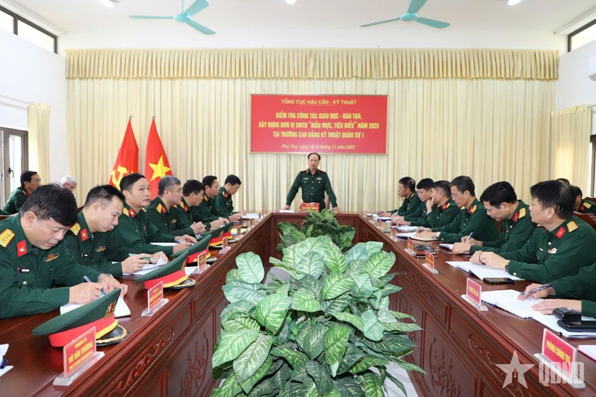 Thực hiện Kế hoạch số 6361/KH-TM ngày 23-10-2025 về việc kiểm tra các trường thuộc Tổng cục Hậu cần - Kỹ thuật năm 2025 được Chủ nhiệm Tổng cục phê duyệt tại Quyết định số 1978/QĐ-TCHCKT ngày 27-10-2025, Đoàn kiểm tra của Tổng cục đã tiến hành kiểm tra các mặt công tác: Giáo dục - đào tạo; nghiên cứu khoa học; chuyển đổi số; xây dựng xã hội học tập; xây dựng đơn vị vững mạnh toàn diện “mẫu mực, tiêu biểu”.