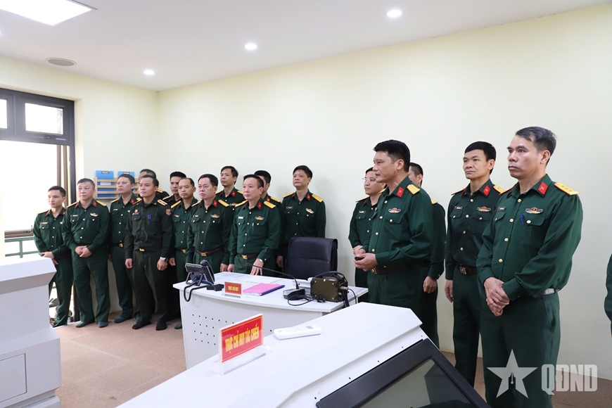 | Các học viên tham quan tại Sở chỉ huy Lữ đoàn Tác chiến điện tử 84. |