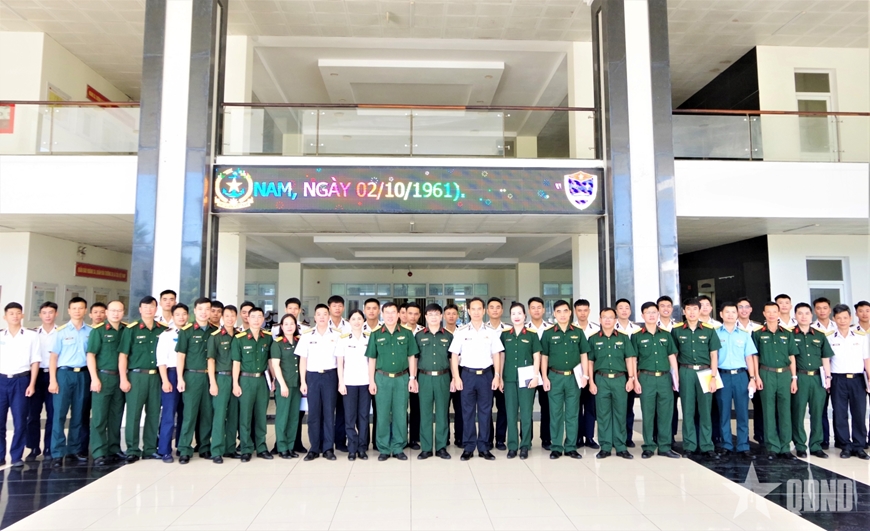 Các đại biểu chụp ảnh cùng cán bộ, giảng viên, học viên Học viện Hải quân. |
