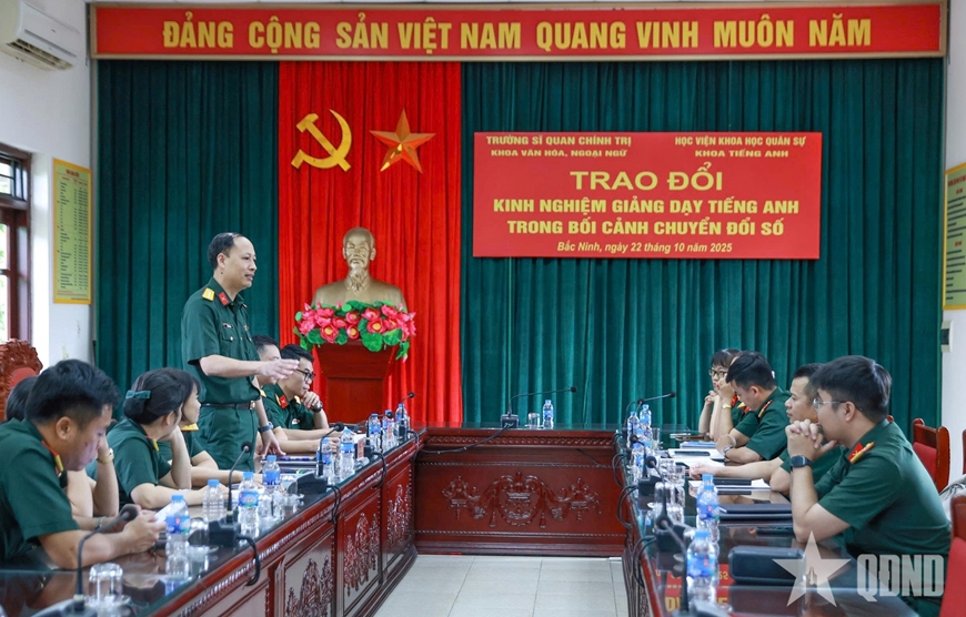 Ngày 22-10, Khoa Văn hóa, Ngoại ngữ (Trường Sĩ quan Chính trị) phối hợp với Khoa Tiếng Anh (Học viện Khoa học Quân sự) tổ chức trao đổi kinh nghiệm giảng dạy tiếng Anh trong bối cảnh chuyển đổi số.