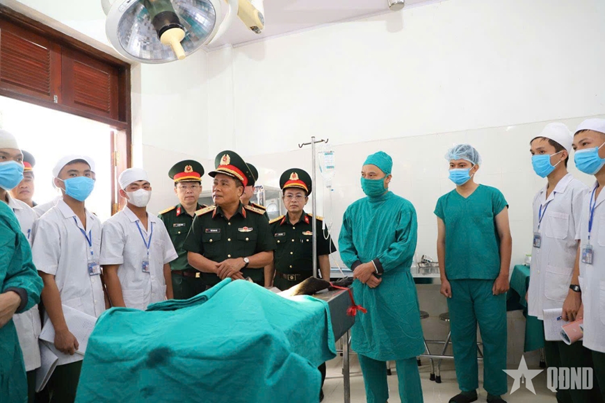 Đoàn công tác kiểm tra giờ học thực hành của học viên ngành Quân y. |