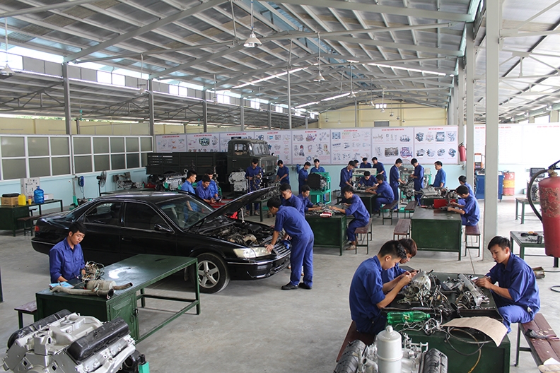 | Học viên học thực hành bảo dưỡng, sửa chữa ô tô. Ảnh: VĂN LỘC |