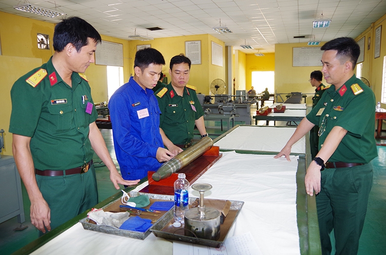 | Kiểm tra, đánh giá kết quả học tập của học viên đào tạo Trung cấp đạn dược. Ảnh: VĂN LỘC |