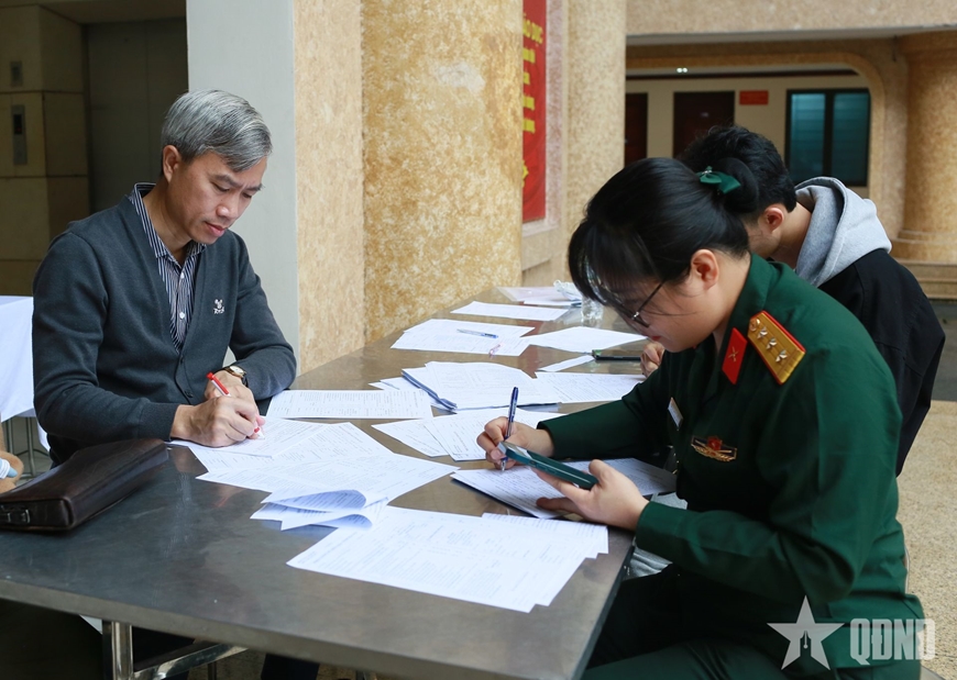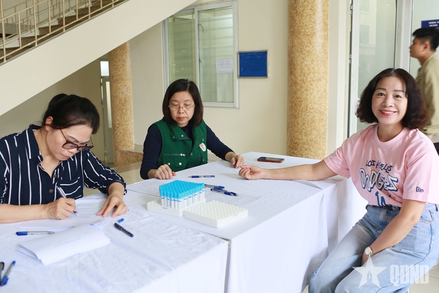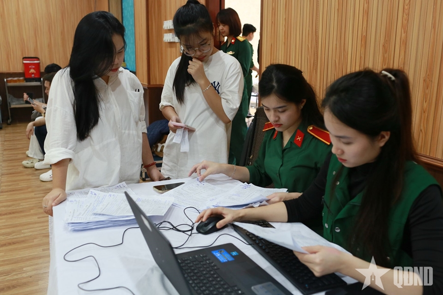 | Cán bộ, học viên nhà trường tích cực đăng ký hiến máu. |