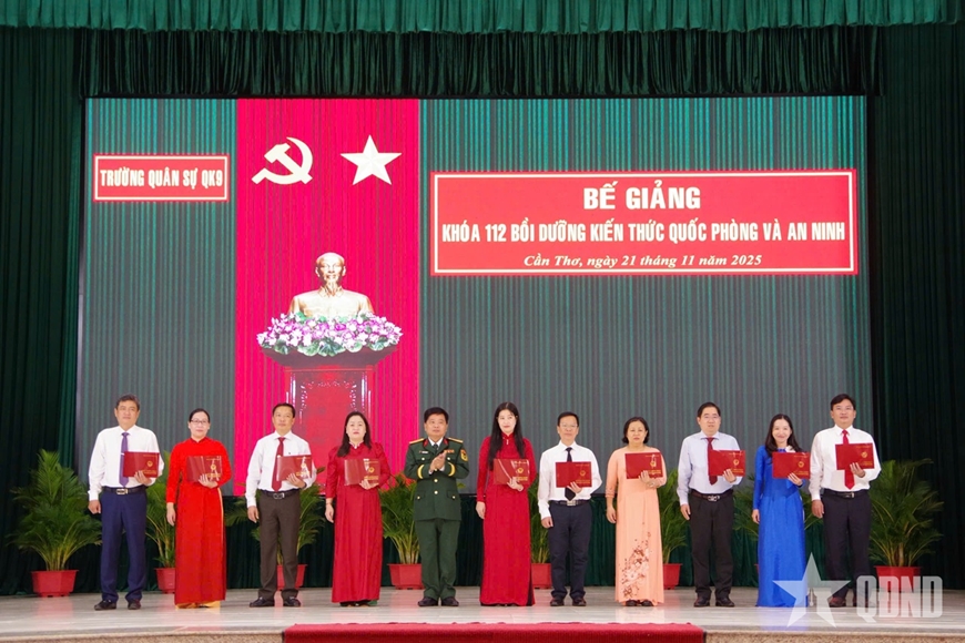 Sáng 21-11, Thiếu tướng Chiêm Thống Nhất, Phó tư lệnh, Tham mưu trưởng Quân khu 9 dự và phát biểu bế giảng lớp bồi dưỡng kiến thức quốc phòng và an ninh đối tượng 2, khóa 112 tại Trường Quân sự Quân khu 9.