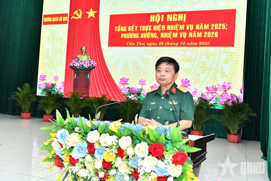 Phát biểu chỉ đạo tại hội nghị, Thiếu tướng Quách Văn Nhỏ, Phó tư lệnh Quân khu 9 ghi nhận, đánh giá kết quả đạt được của nhà trường năm 2025; đồng thời yêu cầu cán bộ, giáo viên, nhân viên, học viên, chiến sĩ nhà trường tiếp tục quán triệt thực hiện tốt Nghị quyết số 1657 của Quân ủy Trung ương, Nghị quyết số 798 của Đảng ủy Quân khu về đổi mới công tác giáo dục và đào tạo, đáp ứng yêu cầu nhiệm vụ trong tình hình mới; đẩy mạnh thực hiện phương châm “Chất lượng đào tạo của nhà trường là khả năng sẵn sàng chiến đấu của đơn vị”.