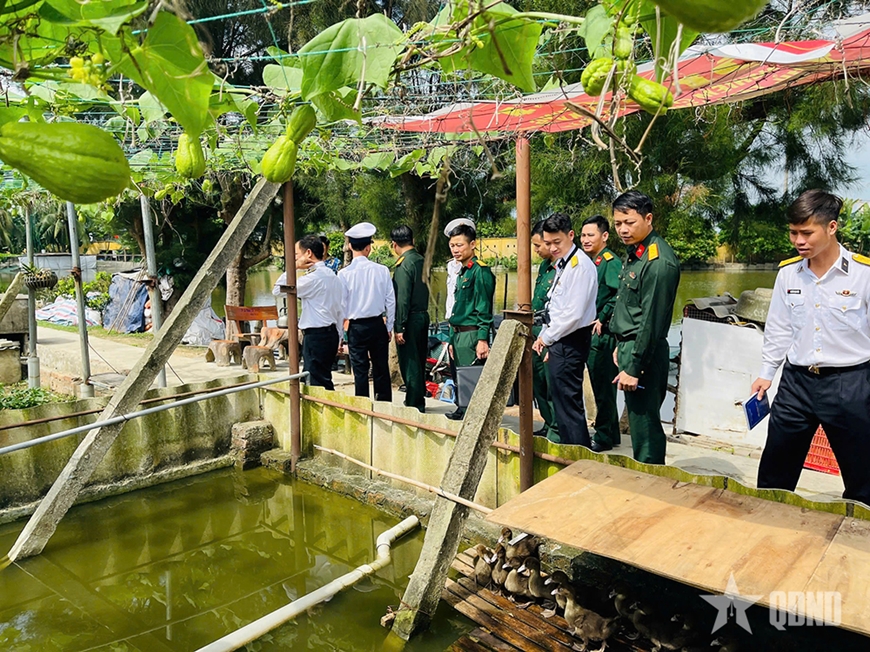 | Đoàn khảo sát các mô hình kinh tế - quốc phòng của Bộ đội Hải quân. |