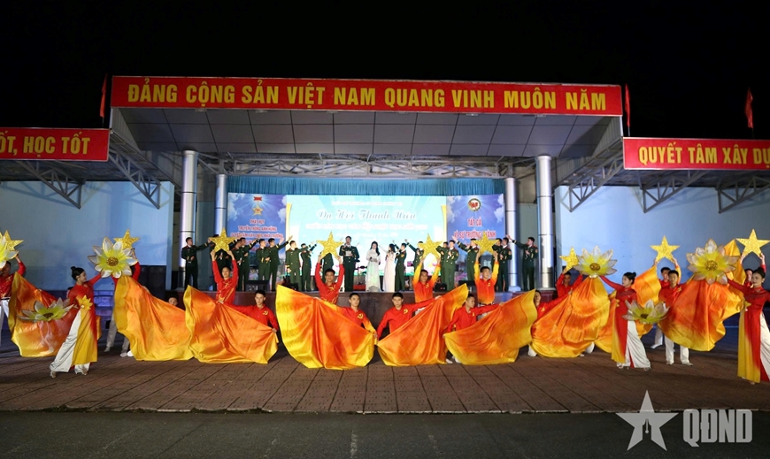| Tiết mục hát múa ngợi ca Đảng quang vinh của học viên và đơn vị kết nghĩa trình diễn. |