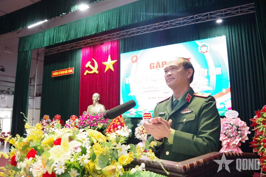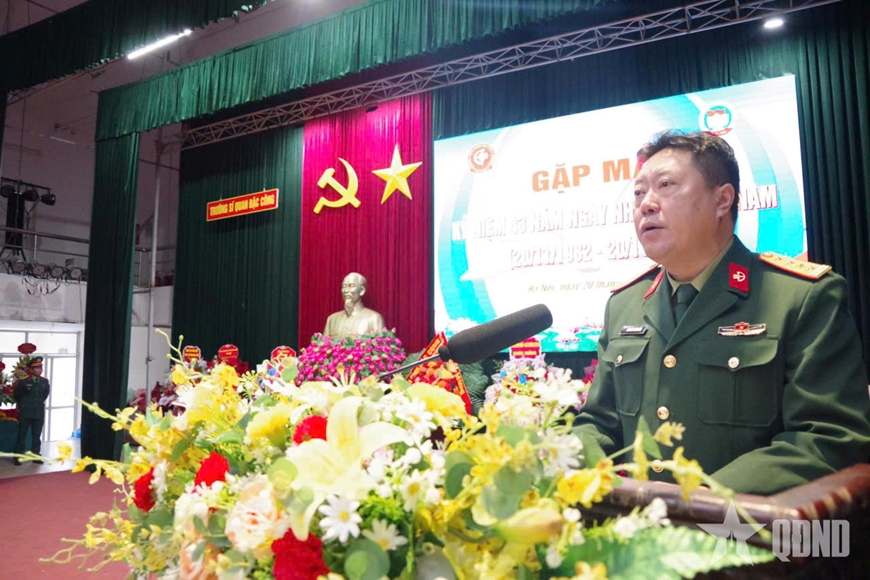 | Đại tá, PGS, TS Nguyễn Xuân Bình, Hiệu trưởng Trường Sĩ quan Đặc công phát biểu tại buổi gặp mặt. |