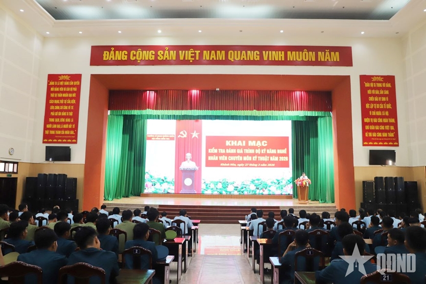 Chiều 27-3, Trường Sĩ quan Không quân tổ chức khai mạc kỳ kiểm tra, đánh giá trình độ kỹ năng nghề năm 2026 cho các nhân viên chuyên môn kỹ thuật trong toàn trường. Đại tá Nguyễn Trường Thành, Phó hiệu trưởng nhà trường, Chủ tịch Hội đồng kiểm tra, đánh giá dự và phát biểu khai mạc.