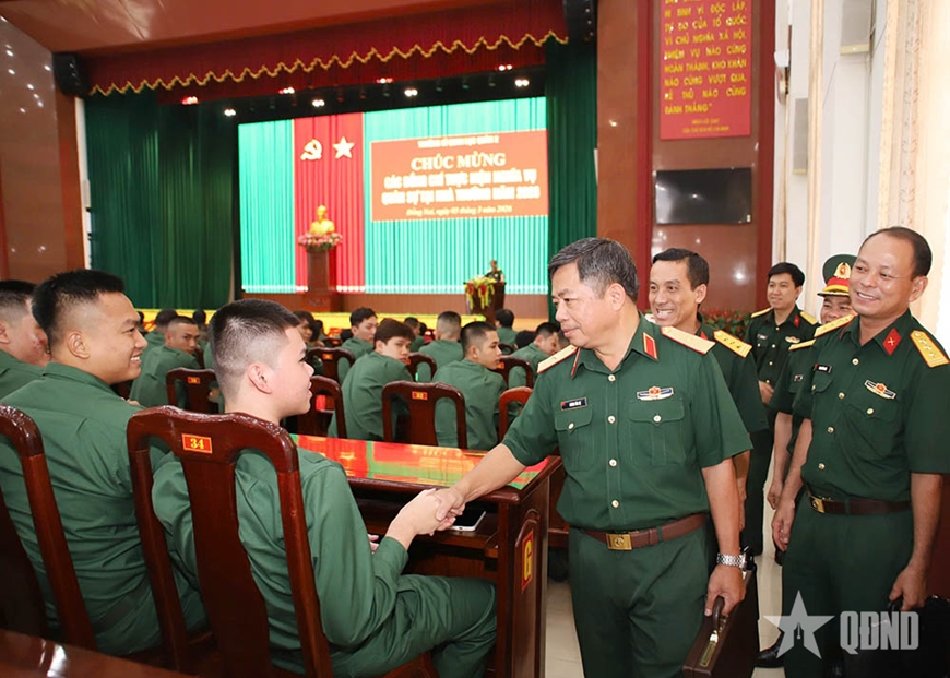 | Các chiến sĩ mới dự buổi gặp gỡ, chúc mừng. |