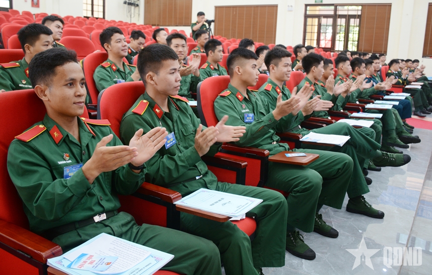 | Cán bộ, đoàn viên, thanh niên Trường Sĩ quan Kỹ thuật Quân sự phấn khởi dự hội nghị tổng kết công tác Đoàn, phong trào thanh niên. |