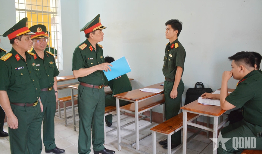 | Trung tướng Đỗ Văn Thiện, Chính ủy Tổng cục Hậu cần - Kỹ thuật thăm, kiểm tra, động viên học viên Trường Sĩ quan Kỹ thuật Quân sự. |