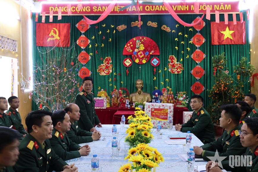 Nhiều đơn vị còn sáng tạo trong trang trí phòng đón Tết, bày mâm ngũ quả, treo câu đối đỏ, kết đèn lồng. Sắc đỏ của cờ Tổ quốc, sắc hồng của đào, sắc vàng của hoa cúc hòa quyện, tạo nên bức tranh xuân rực rỡ giữa môi trường quân ngũ.
