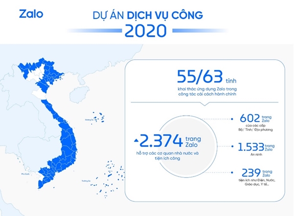 Song song với việc thực hiện các giải pháp đồng bộ nhằm xây dựng Chính phủ điện tử tại nhiều địa phương, Zalo đóng vai trò là kênh thông tin truyền thông chính thống trong cuộc chiến phòng, chống dịch Covid-19 tại Việt Nam và là đồng hành cùng người dân giảm thiểu thiệt hại do thiên tai, bão lũ gây ra.