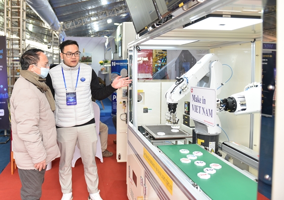 | Hệ thống tự động hóa phụ trợ cho công nghiệp của Công ty Cổ phần Chế tạo máy Autotech Việt Nam tại Triển lãm quốc tế đổi mới sáng tạo Việt Nam 2021 tổ chức tại Hà Nội. |