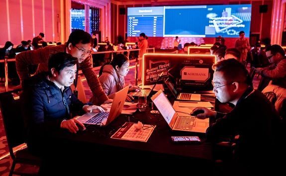 Nhân viên an toàn thông tin của Ngân hàng Nông nghiệp và Phát triển nông thôn tham gia sự kiện "Diễn tập thực chiến phòng thủ không gian mạng-DF Cyber Defence", tháng 12-2020. Ảnh: MAI TRẦN.