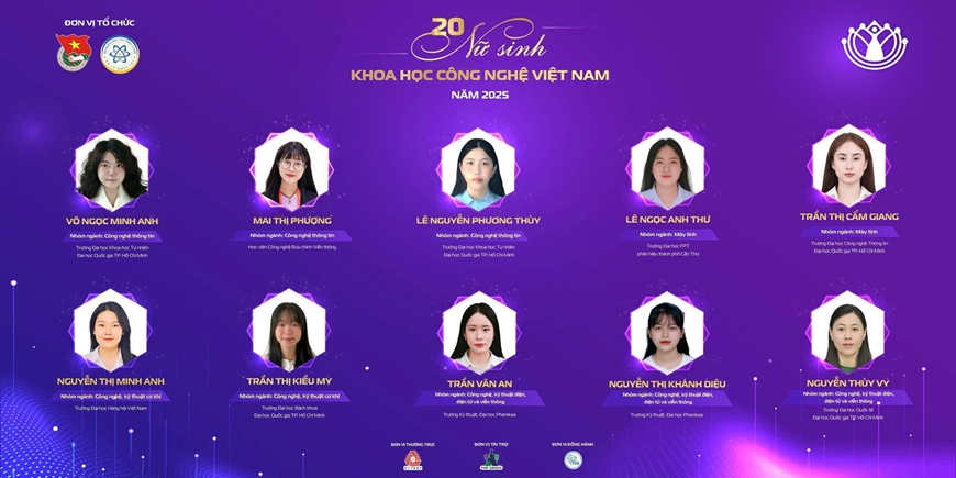 Top 20 nữ sinh viên xuất sắc đoạt Giải thưởng Nữ sinh khoa học công nghệ Việt Nam năm 2025.