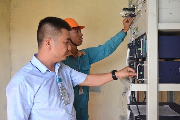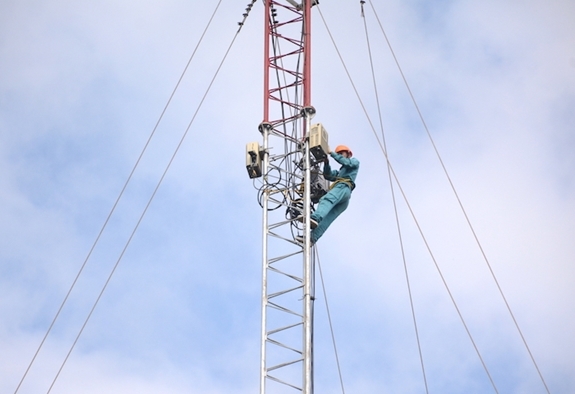Nhân viên kỹ thuật kiểm tra định kỳ thiết bị trên trạm BTS. |