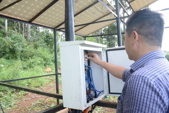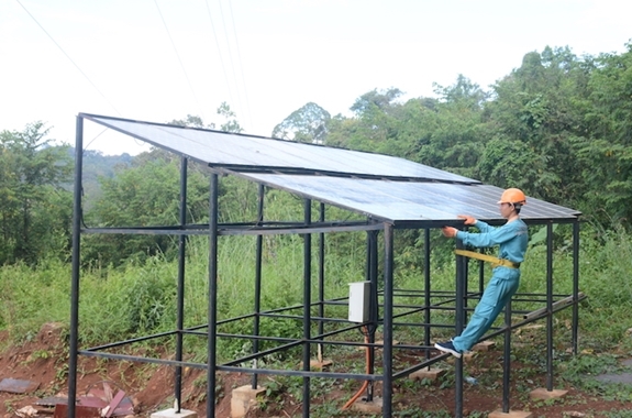 Do không có điện lưới nên điện mặt trời được sử dụng để bảo đảm vận hành trạm BTS. Ngoài bảo trì hạ tầng trạm BTS, nhân viên kỹ thuật còn kiểm tra pin mặt trời. |