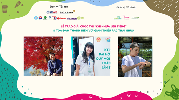 Cũng trong khuôn khổ chương trình, gần 100 đại biểu là đại diện các tổ chức phát triển, đơn vị tài trợ, doanh nghiệp, các thí sinh và các bạn trẻ quan tâm đến môi trường cũng đã cùng nhau trao đổi những quan điểm về vấn đề rác thải nhựa trong tọa đàm “Thanh niên với giảm thiểu rác thải nhựa”. Các khách mời của tọa đàm bao gồm: Nhà báo Đỗ Doãn Hoàng, chị Nguyễn Thị Thu Trang, Phó giám đốc GreenHub, bạn Nguyễn Bá Khải (thành viên nhóm Helius+).