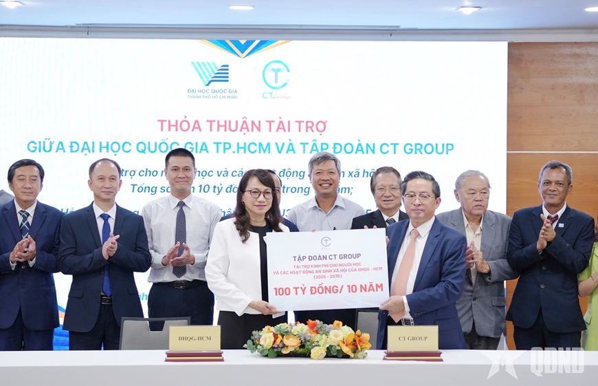 | GS, TS Nguyễn Thị Thanh Mai, đại diện Đại học Quốc gia TP Hồ Chí Minh, tiếp nhận hỗ trợ của doanh nghiệp cho hoạt động học thuật, nghiên cứu khoa học. |