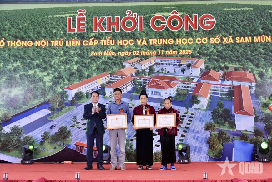 Cùng ngày, tại các xã Nà Bủng và Sam Mứn cũng diễn ra lễ khởi công các trường phổ thông nội trú liên cấp Tiểu học và THCS theo mô hình tương tự.
