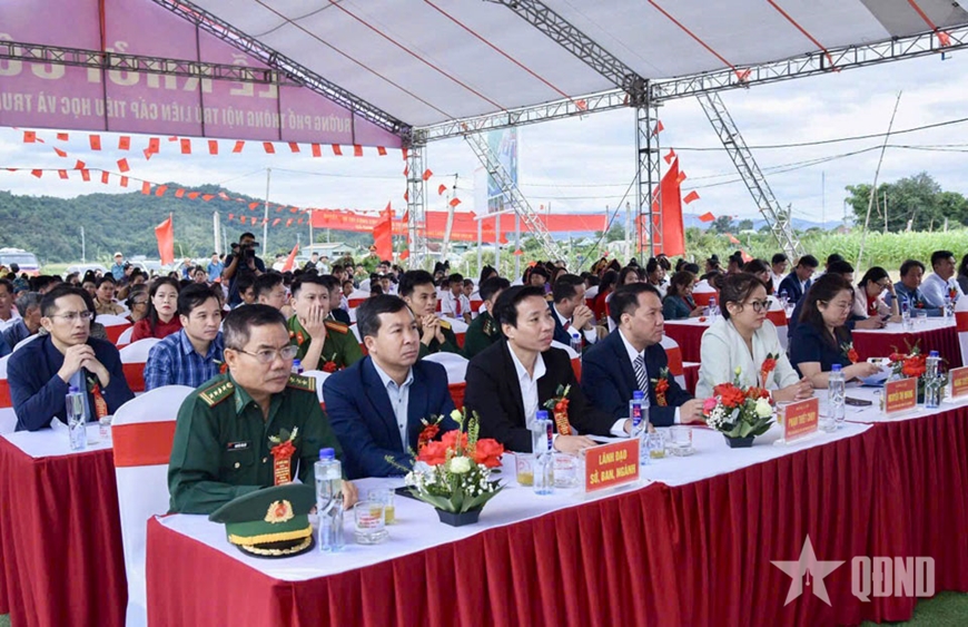 | Đại biểu dự lễ khởi công tại công trình Trường phổ thông liên cấp Tiểu học và THCS xã Núa Ngam. |