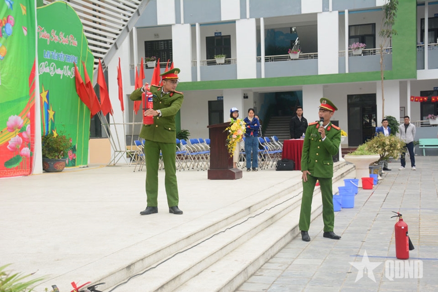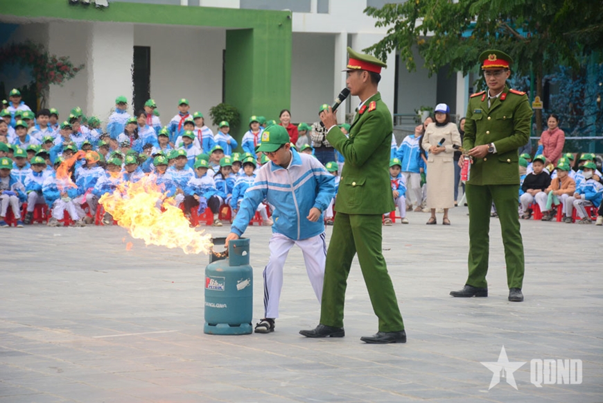 Tham gia tuyên truyền, gần 1.230 cán bộ, giáo viên, nhân viên và học sinh Trường Tiểu học Hà Nội - Điện Biên Phủ, tỉnh Điện Biên được trang bị các kiến thức như: Đặc điểm, tính chất nguy hiểm cháy, nổ trong trường học; các biện pháp phòng cháy và chữa cháy trong trường học; những lưu ý khi chữa cháy; các biện pháp kỹ thuật an toàn; cách phân biệt bình chữa cháy dạng bột khô và dạng khí C02...