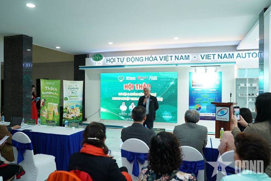 | TS Nguyễn Quân, Chủ tịch Hội Tự động hóa Việt Nam phát biểu khai mạc hội thảo. |
