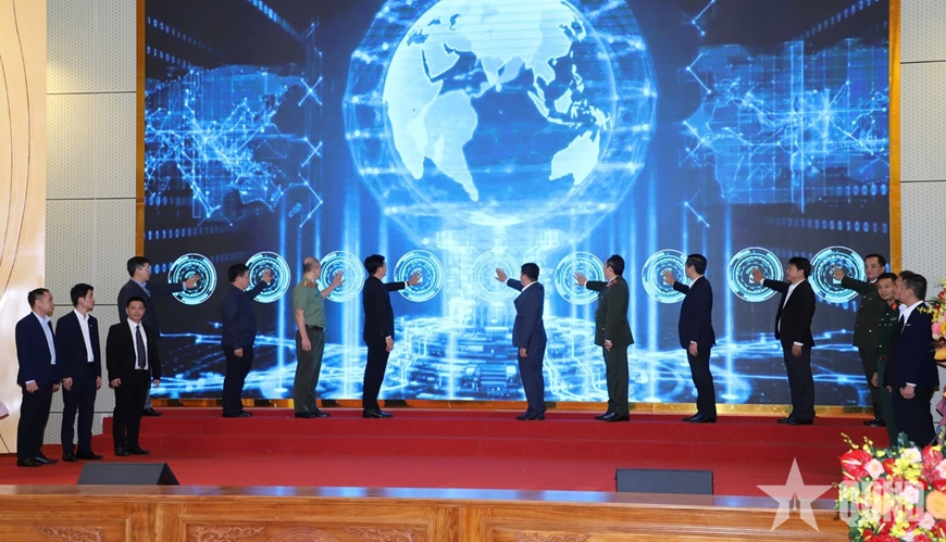 Các đại biểu thực hiện nghi lễ ra mắt Trung tâm Giám sát an toàn, an ninh mạng tập trung tỉnh Lâm Đồng. |