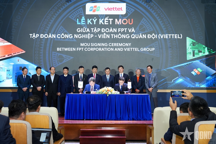 | Tại sự kiện diễn ra lễ ký kết giữa Tập đoàn FPT và Tập đoàn Viettel. |