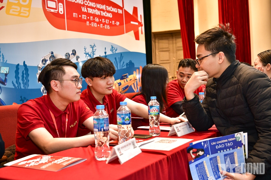 Không chỉ cung cấp thông tin về tuyển sinh, các gian tư vấn tại ngày hội còn mang đến nhiều trải nghiệm thực tế giúp học sinh hình dung rõ hơn về môi trường học tập. PGS, TS Vũ Duy Hải, Trưởng ban Tuyển sinh - hướng nghiệp ĐH Bách khoa Hà Nội cho hay, trường tổ chức ba khu tư vấn đặc biệt, bao gồm tư vấn chuyên sâu về 65 chương trình đào tạo, khu trải nghiệm STEM và công nghệ giáo dục, giúp học sinh tiếp cận sản phẩm công nghệ do sinh viên thực hiện.