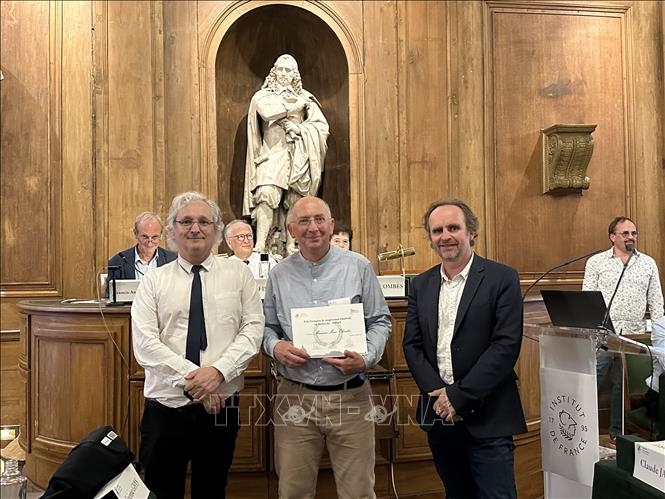 Giáo sư Marc Chardin nhận giải thưởng do Viện Hàn lâm Khoa học Pháp trao tặng. Ảnh:TTXVN |