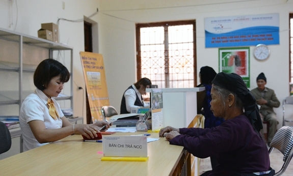 Người có công tại tỉnh Bắc Kạn đến bưu điện nhận chế độ. |