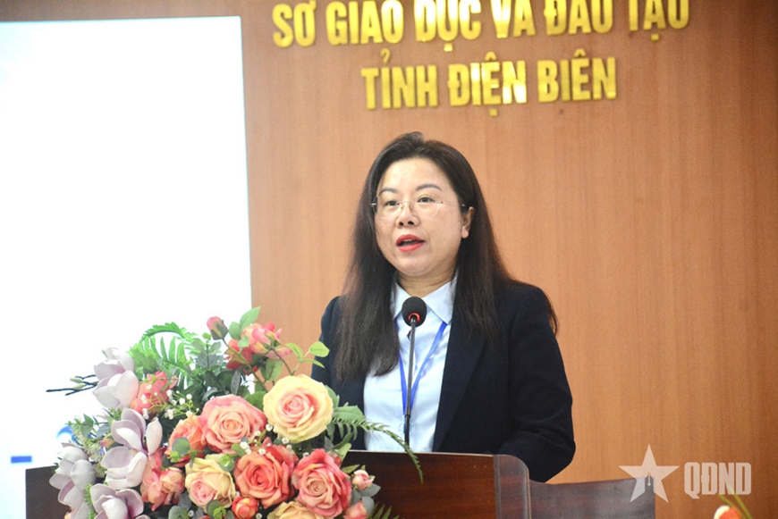 | Bà Hoàng Tuyết Ban, Giám đốc Sở GD&ĐT tỉnh Điện Biên phát biểu tại hội nghị. |