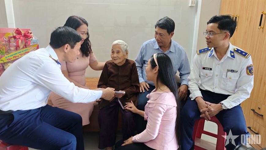 | Thủ trưởng Bộ tư lệnh Vùng Cảnh sát biển 2 và lãnh đạo các đơn vị, công ty đến thăm, tri ân Bà Mẹ Việt Nam anh hùng. |