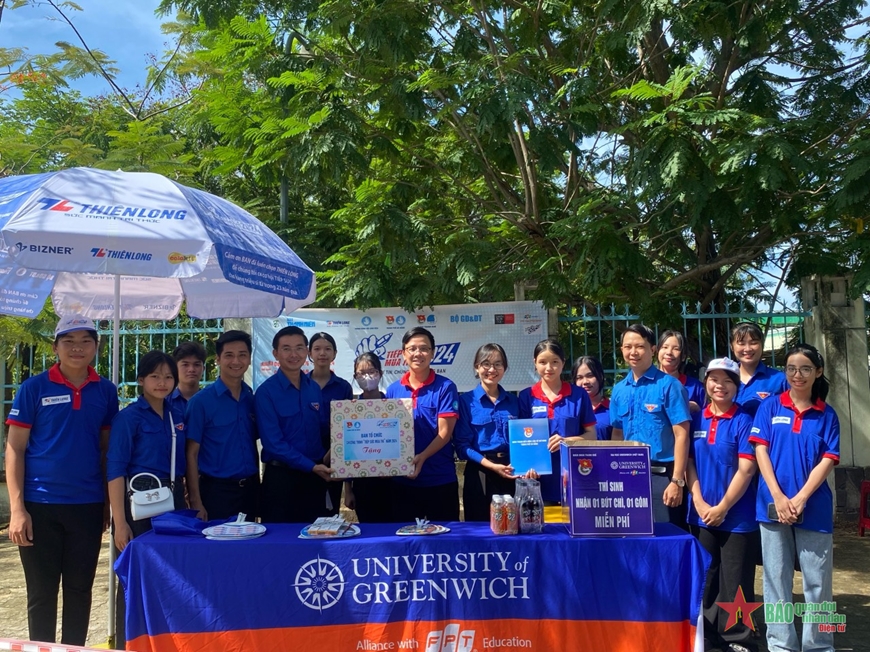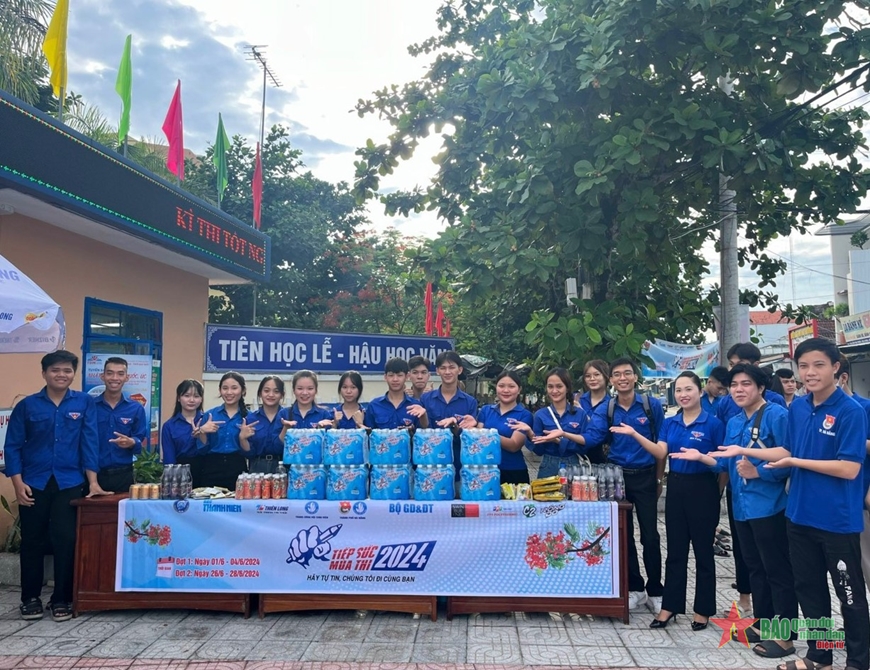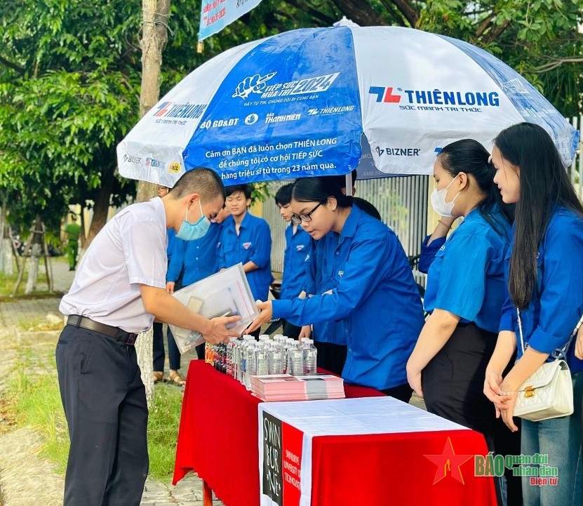 | Thành đoàn Đà Nẵng phối hợp với các lực lượng tặng quà tại các điểm "Tiếp sức mùa thi". |